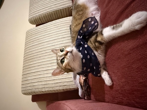 Yaklaşık 1-1.5 yaşında. Doğumunu geçici yuvada yaptı. İlk aşılarını yaptırdık, kısırlaştırdık. Geçici yuvasında çok az günü kaldı kalıcı yuvasını arıyor. Ankarada yaşıyor.