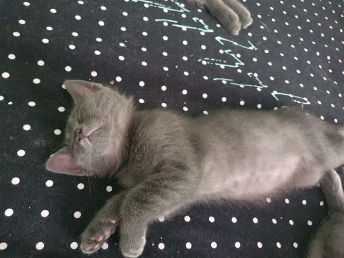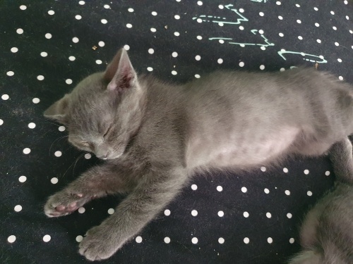 Anneleri odamın camına doğum yaptığından beri evde baktığım 3 kediden biri, çok sağlıklı tombik uslu bir kedi, Korat cinsi olduklarını düşünüyorum
