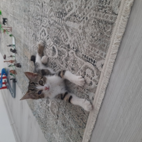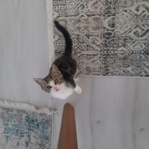 Poncik 2 aylik ev yaşamına alışkın kum egitimi olan bir yavru. Kuru mama, yogurt, yumurta, peynir, makarna yiyor. Bir gözünden tedavi gördü simdi düzeldi ancak o gözünde görme kaybı var. Geçici mi kalıcı bir kayıp mı henüz bilmiyoruz. Diger gözünde hiçbir sıkıntı yok. O yüzden diğer kedilerden hiçbir farkı yok. Çok tatlı sevecen kendini sevdiren bir yavru. Hareketli ve oyuncu bir yavru. İç parazit asisi var. Sorumluk sahibi iyi bakabilecek birine takip şartıyla sahiplendirilecek.