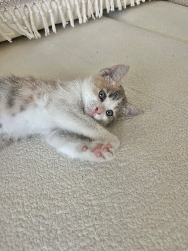 Su an gecici yuvasinda 4-5 haftalik yavru. Yalniz kalmayi sevmiyor, gun icerisinde uzun saatler yalniz birakilmamasi gerekiyor. Uyurken de temas isteyen bi yavrus. Manevi ihtiyacalariyla da ilgilenebilecek birine takip sartiyla sahiplendirmek istiyorum. Detaylar icin ulasabilirsiniz .