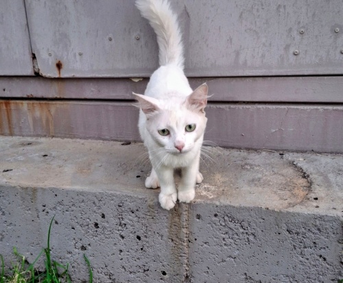 Legolas geçen haftalarda sahiplendirildi, ancak sahibi maddi durumu nedeniyle Legolas'ı sokağa bırakmış, biz de Legolas için tekrar yuva arıyoruz. Legolas erkek, 6 ya da 8 aylık, genç bir kedi. Çok uslu bir çocuk. Bembeyaz tüylü, mavi gözlü, çok ama çok güzel. Muhtemelen İran, Ankara veya Van melezi. Bu cinsler bazen sağır olabiliyor, ama kulakları duyuyor. Biz sabahları yemek getiriyoruz, ancak sokakta yapamaz, narin bir hayvan. Çok çok acil yuva arıyoruz.