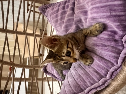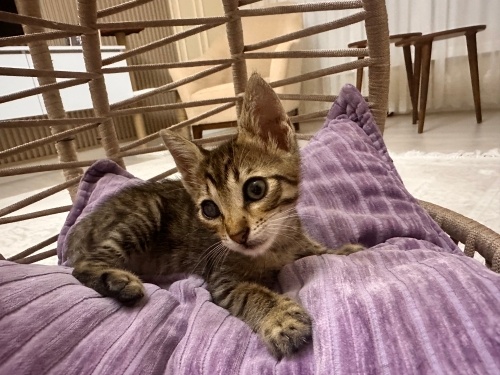 Sitede ki yavrulardan biri. Sürekli süt için meme arıyor. Ama süt içiremedim. Çocukların elinden zor aldım. Yeni nesil hayvan sevmesini bilmiyor. Havaya atıp yere düşüşünü izliyorlardı. Evde üç kedim var onlara zor yetiştiğim için bunu sahiplenemiyorum. Bebek gibi bakacak bir aile arıyorum. Minnacık avuç kadar. Akranı olan kedilere göre biraz çelimsiz. Kucakta uyuyor. Gözünde sıkıntı var. Belediyenin veterinerinden randevu almaya çalışıyorum. Özele götürmeye gücüm yok. Zaten eksik, böyleyken sokağa terk edemedim…