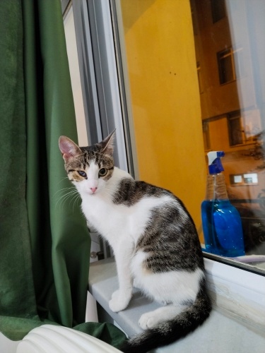 Balkonuma gelen bu kedinin tek gözünde pusu görünce veteriner yardımıyla tedavisine başladım. 2 hafta sonra tedavisi bitince eğer sahiplendiremezsem geri sokağa bırakıcam. Oyuncu bir kedi ve kendini sevdiriyor.