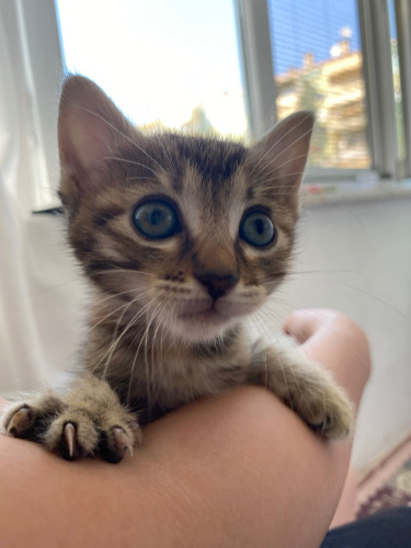 Annesine araba çarptığı için 1 aylıkken bulunan bebeklere evde baktık. Şimdi 1,5 aylıklar ve kalıcı yuvalarını arıyorlar. Kuru mamaya geçtiler ve kum eğitimleri var. Bella kucakta uyumayı çok sever, çok mırlar. Kardeşleriyle oynamayı çok sever, uysal bir bebektir. Takip şartı ile sahiplendirilecektir.