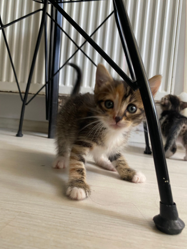 Annesine araba çarptığı için 1 aylıkken bulunan bebeklere evde baktık. Şimdi 1,5 aylıklar ve kalıcı yuvalarını arıyorlar. Kuru mamaya geçtiler ve kum eğitimleri var. Cezve oyuncudur, kardeşleriyle oynamayı çok sever. Uyumlu ve uysaldır. Takip şartı ile sahiplendirilecektir.