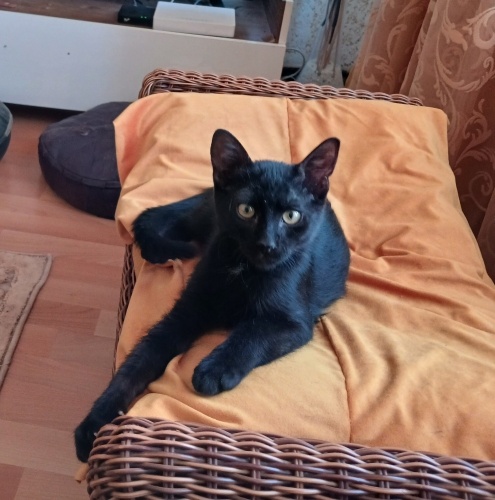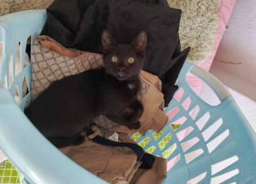 Kuzgun adını aldığı simsiyah tüyleri ve rengine tezat oyuncu, enerjik karakteriyle harika bir çocuk. Sokaktan bulduğumuzda gözlerinde problem vardı. Artık gayet iyi, herhangi bir sağlık sorunu yok. Hem oyun arkadaşı hem de tam bir sevgi yumağı.