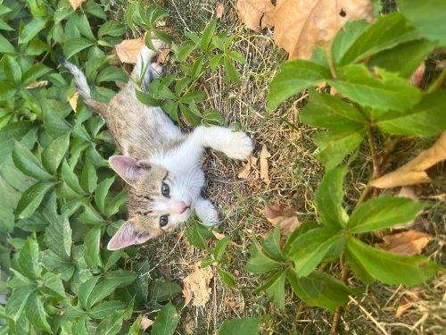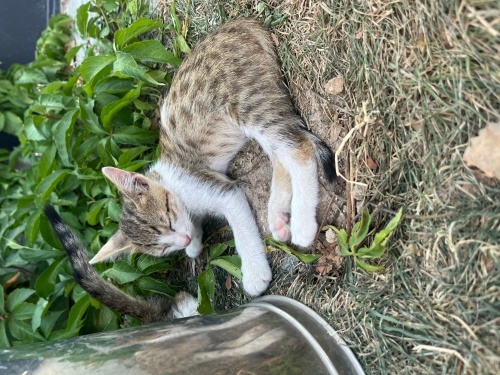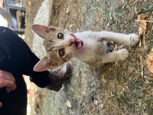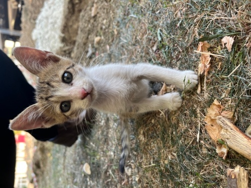 8 Temmuz'da annesi işyerimin bahçesinde doğum yaptı. Daha sonra yavruları çatıya taşıdı ve yavrular çatıya sıkıştılar. 5 saatin sonunda hepsini kurtarabildik ve güçlü onlardan biri. Onu sevecek ve çok çok iyi bakabilecek yeni yuvasını arıyor.