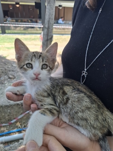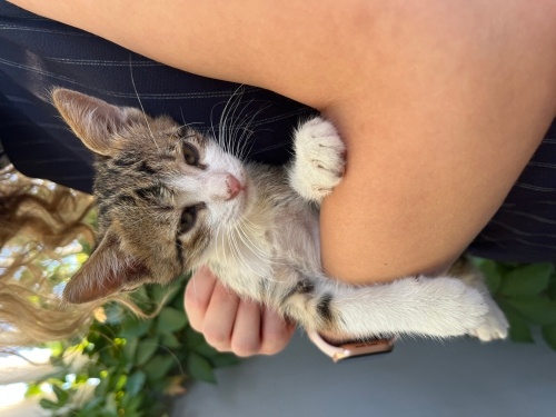 8 Temmuz’da annesi işyerimin bahçesinde doğum yaptı. Daha sonra yavruları çatıya taşıdı ve yavrular çatıya sıkıştılar. 5 saatin sonunda hepsini kurtarabildik ve güçlü onlardan biri. Onu sevecek ve çok çok iyi bakabilecek yeni yuvasını arıyor