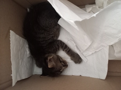 Yeni bulduk, terk edilmiş, hem deneyimli değiliz hem de okullar açılıyor bakamayız. Deneyimli bir hayvansevere teslim edeceğiz ,1 aylık maması var.