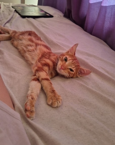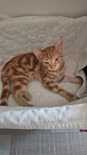 Yakın zamanda kendisini hasta halde sokakta bulup eve alıp veterinere götürdük. Küçük bir grip atlatıp iyileşme sürecini tamamladı. Tuvalet eğitimi var ve kuru mamayla beslenebiliyor. Çalışma saatlerimiz böylesine canlı ve tatlı bir kedi bakmaya uygun olmadığı için kendisini hakettiği sevgiyi görebileceği bir yuvaya kavuşturmak istiyoruz.