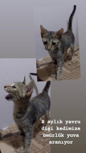 8 aylık dişi yavru kedimize ömürlük yuva aranıyor kuru mama ile besleniyor