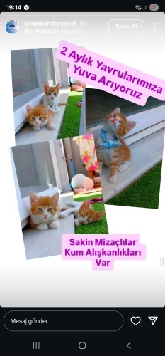 Sokakta baktığım kedi doğurdu. 1 Temmuz dogumlu Simbaya gecici olarak bakiyorum ve sahiplendirmek istiyorum. Simba'nin Ic diş parazit aşısını yaptirdim, tuvalet eğitimi var. Daha 2 aylik anca olacak. Minik Simba'ya sevgi dolu iyi bakilabilecegi güzel bir yuva arıyorum.