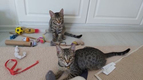 3 aylık dişi tekir yavru kediler yuva arıyor. İnsancıl, oyuncu canlar. Aşıları yapıldı. Kuru mama yiyorlar , tuvalet eğitimleri var .Geçici olarak evdeler . Yakında sokağa dönmek zorundalar. Sıcak bir yuva arıyorlar onlara aile olur musunuz?