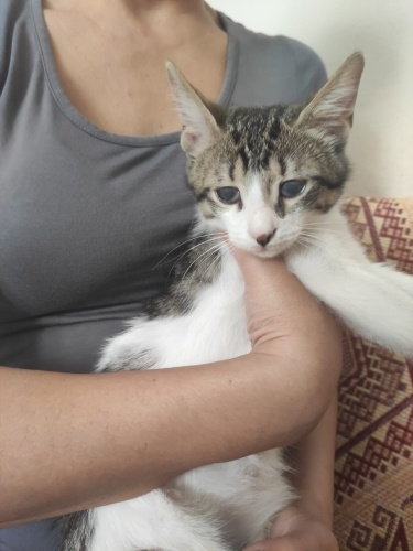 Sokakta kör halde bulunan bu yavrunun gözleri damlalarla çok büyük oranda açıldı şuan buğulu bir şekilde görebiliyor. Gözünde çok az perde kaldı; sokakta bu şekilde yapamaz . Ona yuva olucak kişiden tek ricamız ona sevgi, şefkat ve ilgi göstermesi. Tüm hayatı boyunca, tüm veteriner hekim masrafları yahşi veteriner kliniğinde tarafımızca karşılanıcaktır . erkek , 3 aylık❤️ iletişim : +90 554 112 19 68