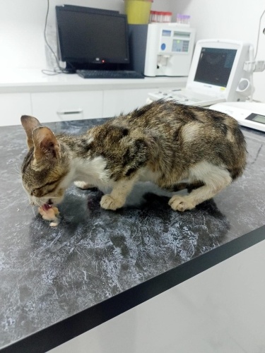 Bu güzel canı sokakta buldum. Çok zayıflamış ve yemek yiyecek halde bile değildi. Şu an veterinerde tedavisi başladı şükür durumu da iyiye gidiyor, yemeye de başladı. Tahminen iki aylık ve erkek. Tedavisi bitince tekrar sokağa dönüp bu hale gelmesini istemiyoruz. Bu cana hiçbir bahaneyle sokağa terk etmeyecek, sorumluluğunu alabilecek yuva arıyoruz. Takip şartıyla. Taşınıyoruz, alerjim çıktı gibi bahanelerle geri dönüş yapacaksanız lütfen baştan aramayın. Biz kuzumuza yuvadan çok aile arıyoruz.