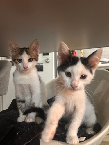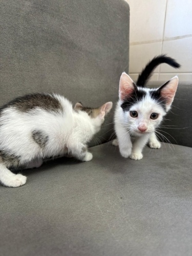 Siyah beyaz olan erkek gri beyaz olan dişi annelleri çok hastaydı sokakta bulduk ve kliniğe aldırdık o gece doğum yaptı ameliyatı ertelendi bebeklerini büyüttü ancak anne artık ameliyata girecek ve bebekler klinik kafesinden baska bir hayat görmediler onlara ayrı ayrı veya beraber ömürlük aile arıyoruz kum eğitimleri var kuru mamaya basladılar iç dış parazitleri yapıldı sadece istanbuliçi ulaştırabiliriz