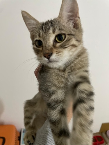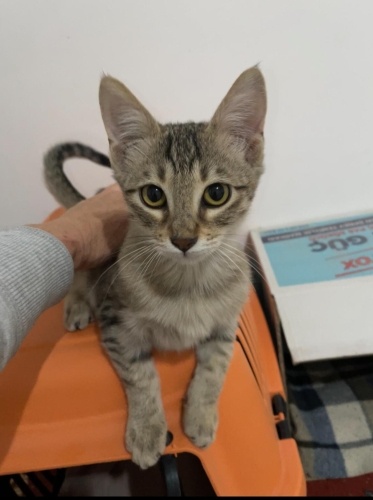 Aliş, tekir oğlan, 4 aylık civarı Kum eğitimi var. Kuru ve yaş mama yiyor. İç-dış parazit uygulamaları var. İnsan canlısı, sakin ve sevgi dolu. Kucak delisi, gurgur bebek. Diğer kediler ile arası gayet iyi.