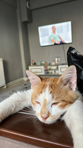 Manisa’da yaşıyor aşıları tam kısırlaştırma yapıldı beyaz ve karamel renklerinde erkek kedi