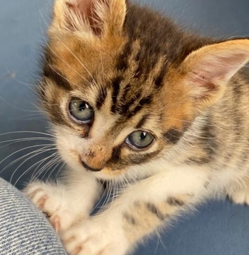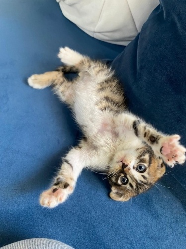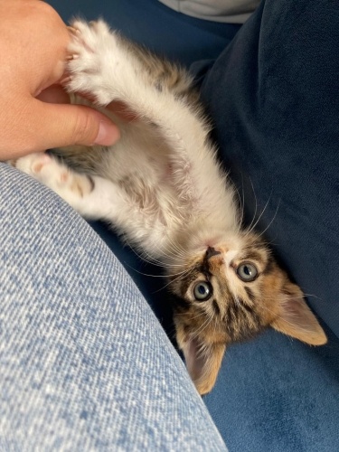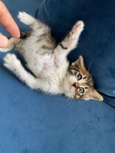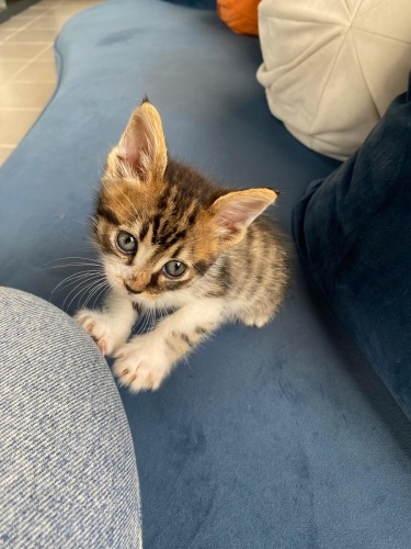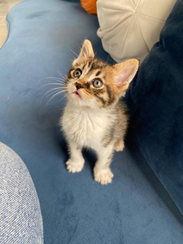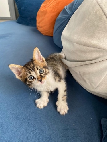 Henüz kimse minik için aramadı, bütün gün kafesinde şansını bekliyor. Sokakta tek başına ağlarken bulduğumuz minik yavruya yeni yuvasını arıyoruz. Yaklaşık 6 haftalık, çocuk ayakkabısı boyutlarında erkek bir tekir. İlk muayenesi yapıldı, iç ve dış parazit uygulamaları tamamlandı ve genel durumu oldukça iyi. Kendisi mama yiyor, tuvalet eğitimi var, sağlıklı ve çok meraklı bir yavru. Hem oyuncu hem de kucağa gelip mırlamayı seven sosyal bir karaktere sahip. Hayatınızı çok neşelendirecek.