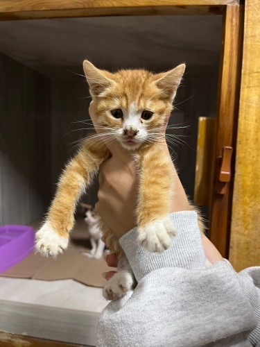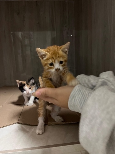 Sokakta zor durumda bulunan biri erkek, diğeri dişi iki yavru kedi kurtarıldı. Yaklaşık bir buçuk aylıklar. Her ikisi de kör ama sese tepki veriyorlar, yönlerini bulabiliyorlar ve hayatlarını sorunsuz şekilde sürdürebiliyorlar.