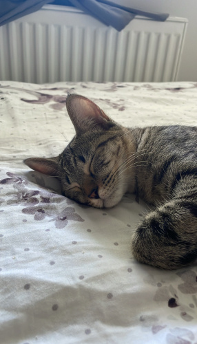 Bahçeye gelen kedi doğurduğunda eve almıştım ama artık bakamıyorum. Isırmaz, tırmalamaz. Çok sevecendir kendini sevdirmeye bayılır. Tuvalet eğitimi var. Mama ayrımı yapmıyor.