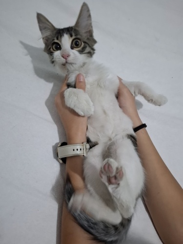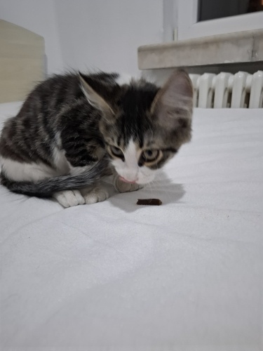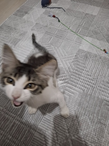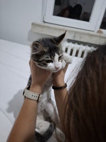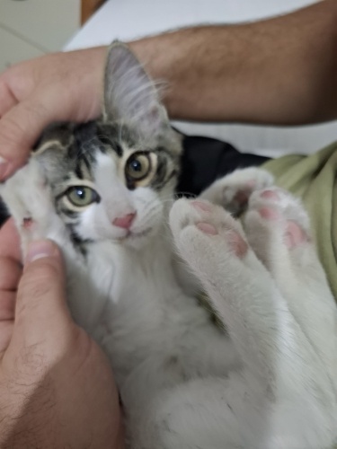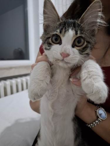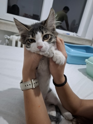 Markete giderken birden üstüme tırmandı. Ağzı ve patisi yaralıymış. Resmen yardım istedi benden. Eve getirdim ama evde 4 kedi oldu ve gücüm yetmiyor dördüncüye. Tedavisini ettirip sahiplendireceğim. Güvenilir ve güzel bir yuva istiyorum. Kedi erkek, sanırım 3 aylık. İştahı yerinde. Kum kabını kullanıyor. Kuru mama yiyebiliyor. Çok oyuncu ve sevecen. Çok güzel bir yavru. Şimdi Kurtuluş metronun yakınlarındaki evimde kalıyor. Takip ve sözleşme şartıyla ücretsiz sahiplendirilecek.