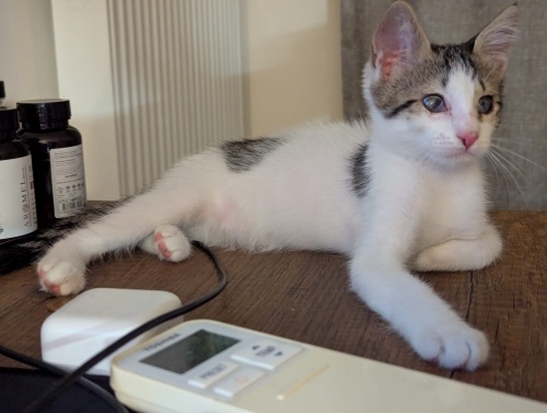 4 Aylık dişi tekir. 2 aylıkken sokakta gözleri kapalı araba altında bulduk.Gözleri enfeksiyondan kapanmıştı tedavileri tamamlandı ve geçici yuvada bakılıyor .Görme engeli yok ama gözleri hasar aldı herhangi bir bulaşıcı hastalığı yok kan sonuçları mevcut.İlk aşıları yapıldı ve sağlıklı oyuncu cana yakın bir bebek. Geçici yuvada vakti doluyor sokağa hiç alışık değil ev kedisi acil yuvalandırma arıyoruz sokağa terk edemeyiz.
