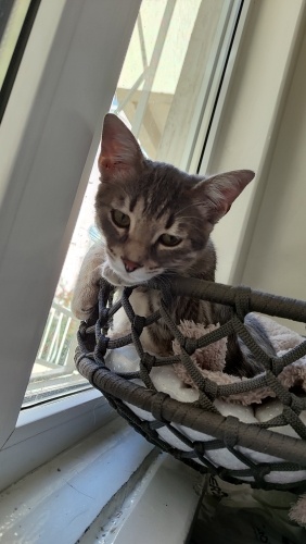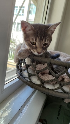 5 aylık,dişi,kum kullanma ve kuru mama yeme alışkanlığı var.İç dış parazit uygulaması yapıldı.Oyuncu,mırıl mırıl sevgi dolu ve aşırı sevimli bir minik. Çizme ve ısırma huyu yok, Kedilerime ve geçici yuva olduğum miniklere hemen uyum sağladı. Teması çook seviyor sizi sürekli öpüp,size sarılıp yada kucağınızda uyuyor.