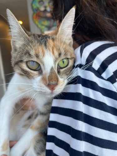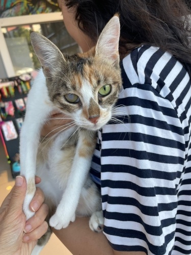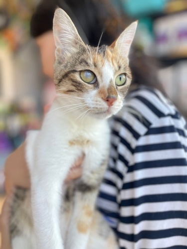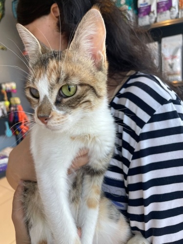 Bal, 1 yaş civarı Calico kız. İç-dış paraziti var. Kum eğitimi var. Kuru ve yaş mama yiyor. İnsan canlısı, sevgi dolu, size sımsıkı sarılır. Dokunduğunuzda gurlamaya başlar. Kısır değil.