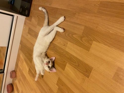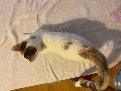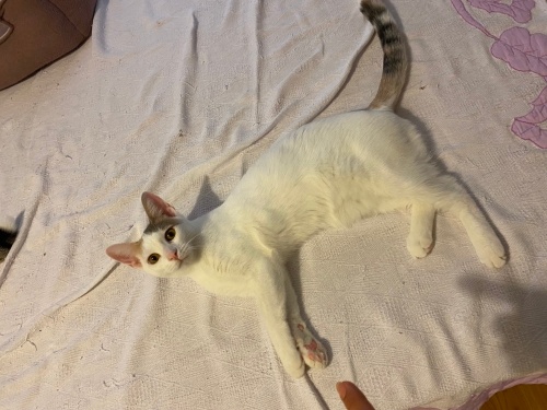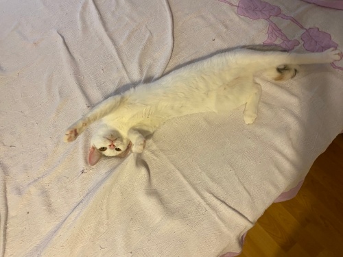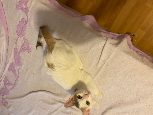 5-6 aylık çok sevgi dolu bir dişi. Onu sokakta buldum tasması vardı çok korkmuş ve ağlıyordu. Sokak kedisi gibi değildi evden atıldığını veya kaçtığını anladım ve geçici olarak evine aldım. Kum eğitimi var. İç dış paraziti yapıldı. Sahibini bulamadım. Sokakta yaşamaya alışkın değil. Başından geçenlere rağmen hala insanlara güveniyor, kucağa alınınca mırıl mırıl mutlu oluyor. Hayat ona zorluklar yaşatmış ama içinde hala kocaman bir sevgi saklı. Şimdi geçici olarak güvenli bir yerde. Ama ömür boyu kalabileceği bir yuvası yok. Onu sahiplenmek, sadece bir kediye yuva açmak değil, aynı zamanda sadık bir dost, minik bir sırdaş ve sonsuz sevgiyi hayatına davet etmek demek. Tek isteği, güveneceği bir yuva ve kalbini paylaşacağı bir aile. Ona yuva olur musun?