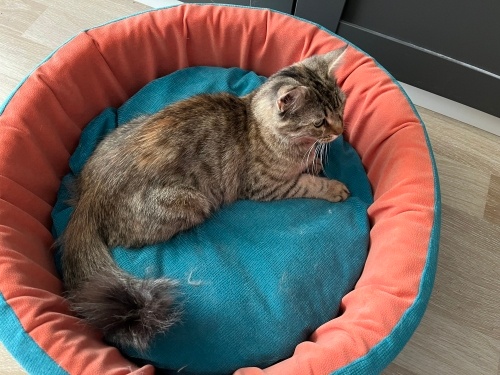 1-2 yaşlarında, kısır dişi, sağlıklı ve çok güzel bir çocuk. İç dış parazitleri yapıldı. Oyuncu, eğlenceli ve biraz ürkek. Daha önce bir süre evde bakılıp sokağa atılmış, şu an geçici olarak evde bakıyoruz. Kendi kedimiz hasta olduğu için bu güzel kıza acil yuva bulabilmek istiyoruz. Mama desteği verebiliriz.