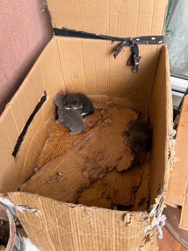 Apartman kapısına kutuyla bırakmışlar. Süt yavruları. Özel bakım istiyorlar. Havalar çok soğuyacak geceden beri ağlıyorlarmış. Bana da resim gönderdiler. Büyüyünceye kadar baksanız da olur yoksa ölecekler.