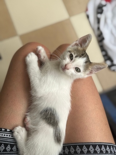 2.5 aylık, erkek, adı Totoro. Cadde kenarında bulduğumuzda kötü bir haldeydi. Tedavisini yaptırdık, iç-dış parazit aşılarını oldu, şu an gayet sağlıklı. Tuvaletini kuma yapıyor. Evde kendi kedimiz olduğu için balkonda bakıyoruz. Çok oyuncu, oyun oynamadığı zamanlarda da hep kucağınızda oturup gurlamak istiyor. Temas seven, çok sakin bir kedi. Vakti geldiğinde kısırlaştırma şartıyla ona kendi gibi tatlı yuvasını arıyoruz.
