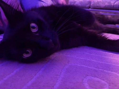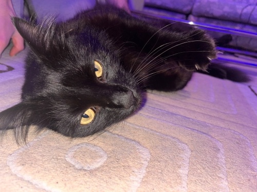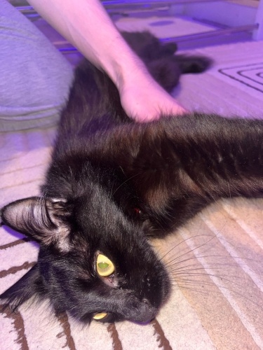 Şu an Çankaya, Ankara'da geçici bir yuvada kalıyor. Sokakta tasmalı olarak bulundu ve çevreye soruşturulduğunda sahibi bulunamadı. Veteriner Pofuduk'un çipsiz olduğunu ve bu nedenle aşı yapıldıysa bile bilgilerine ulaşmanın imkansız olduğunu söyledi. 2 aylık parazit ilaçlarını yaptırdım. Şu an 1 haftalığına geçici bir yuvada kalıyor ama ondan sonra kalacak yeri yok. Çok uslu ve kendini zorla sevdiren bir ev kedisi, yaklaşık 2-2,5 yaşında, kısırlaştırılmış, tüyleri parlak ve yumuşak, yani çok bakımlı, herhangi bir sağlık sorunu olmayan bir kedi. Bazen sevmek için evirip çevirseniz bile hiç vurmaya çalışmıyor, tıslamıyor. Ek olarak eşyaları tırmalama davranışı yok. Evimde kendi kedilerim olduğu için (kendi kedilerim çok agresif) ve başka bir kedinin maddi yükünü karşılayamayacağım için sahiplendiriyorum. Pofuduk dünya tatlısı bir kedi.