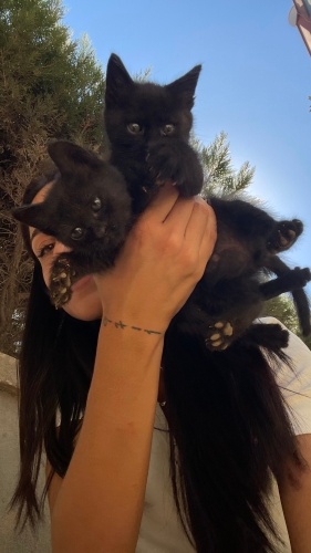 4 kardeşler siyahlardan biri erkek diğer 3ü dişi, 2 aylıklar sağlıklılar. Anneleri köpekler tarafından öldürüldü 1 haftadır besleme ve bakımlarını yapıyoruz. Bugün yavruların ikisini de köpeklerin elinden zor aldık. Evde köpeğimiz var ve uzun saatler evde olmuyoruz köpeğimize güvenmediğimiz için alamayız. Korunaklı bir bahçemiz yok. İç dış parazitleri yapıldı. Bölgede köpek çok fazla, zarar görmeden çok güzel bir yuvaya sahiplendirmek istiyoruz. İzmir gaziemir