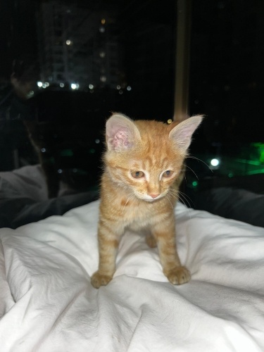 Hardal çok sevimli 1.5 2 aylık çok sevimli sevecen oyuncu bir kedi. Dışardan çok korkuyor arabanın kaputunda bulduk ve iki haftadır bizle. Evimizde iki kedimiz daha olduğu için sahiplendirmek zorundayız.