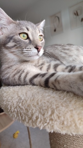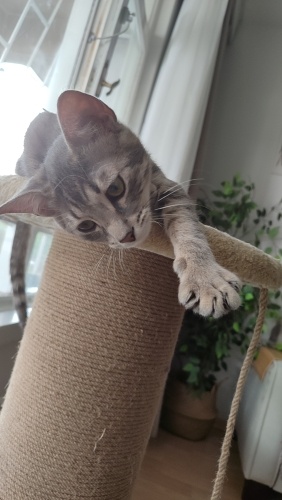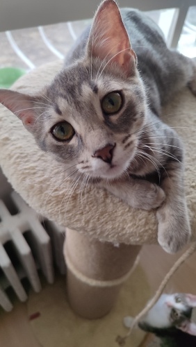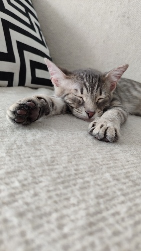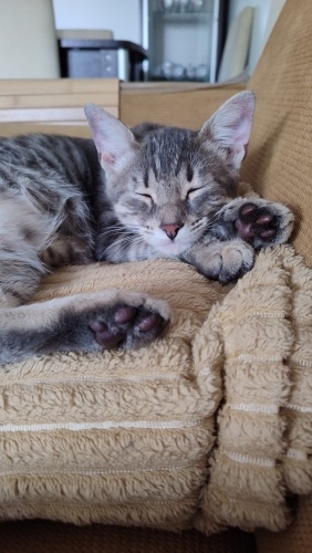 5 aylık, iç dış parazit uygulaması yapıldı, sağlıklı, kum kullanıyor, kuru mama yiyor İnsan görünce gurlamaya başlar,hemen göbeğini açar.Aşırı temas bağımlısı,siz öpünce resmen mest olan, kucakta uyumayı çok seven minnoş.Uyumluda, benim kedilerime hemen uyum sağladı Lütfen sokağa dönmesin minik pati🙏🏼
