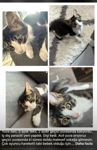 Onu buldugumuzda hastane otoparkında ölüme yatmisti. Birkac arkadas aramizda para toplayarak veterinere goturduk bir arkadasimiz gecici yuva oldu ancak gecici yuvasindaki zamani doldu. Yavru cok oyuncu kendini sevdirmeye bayiliyor