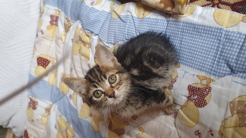 Merhaba. Sevgi dolu bir çocuk. Tam bir kucakci ana kuzusu. Tekir yavruların yuva bulması zor biliyorum ama , şansımı denemek istedim. Belki de birinin kalbine dokunur da sıva bir yuvası olur dedim. Lütfen bu çocuğa bir şans verirmisiniz sıcak bir yuvası olsun. 1.5 aylık. Erkek. İç diş parazit aşısı yapıldı. Kuru mama yiyor. Kum terbiyesi var. Çok teşekkürler.
