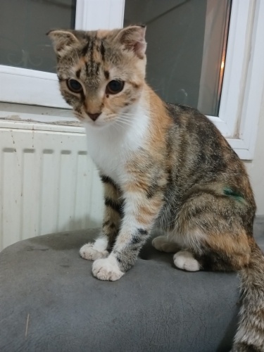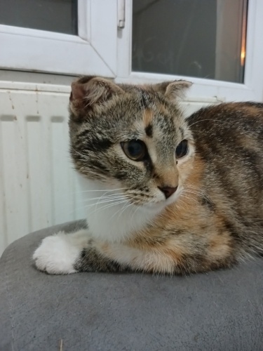 Kocaeli - Gebze. 9-10 aylık kadar calico doğan scoottishfold kıza aile bireyi gibi kabul göreceği yuva arıyoruz. Renkli doğduğu için satılmadı ve satmak isteyenler de onun için daha fazla mama harcamak istemeyip sokağa terk ettiler. Kısırlaştırmasını ve iç dış antiparaziterlerini yaptırdım. Sokakta korkuyor, kendini koruyamıyor. Sessiz sakin, yumuşak huylu bir kız. Pencerelerinde tel sineklik olmayan ya da yaptırmak istemeyenler yazmasın lütfen çünkü her kedi bir gün mutlaka düşer. Terk edilmeyeceği, sorumluluk sahibi bir ailesi olmasını diliyorum. Aşıları ya da kısırlaştırma operasyonu veya başka herhangi bir sebeple hiçbir ücret istemiyoruz, tek dileğimiz iyi bakılması.
