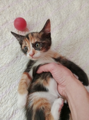 Calico cinsi Yavrumuzun üç kardeşi daha koruma altında. 1.5 aylık yavrularimizdan sadece biri . Kum eğitimi var ve kuru mama yiyor.. dünya tatlısı yavrumuzun tek eksiği sımsıcak bir yuva