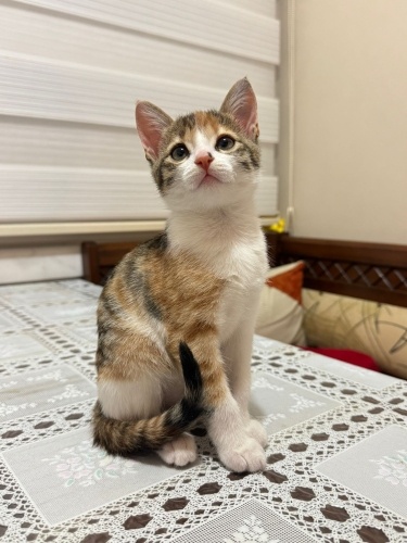 Calico Miniş kızımı Mersin'e gitmiştim toroslar ormanında tek başına ağlarken buldum. Muhtemelen ormana atılmıştı. Bana koşup geldi sanki beni al der gibiydi. Çok kötü durumdaydı. Onu orda bırakamadım alıp Ankara ya getirdik. Daha bir aylık ancaydı. Gerekli kontrolleri yapıldı. Daha birşey yiyemiyordu elimle besledim. Şu an 2 aylık civarı, gayet sağlıklı, artık kuru mama yiyor, kum egitimi var, dişi, iç dış parazit aşısı var, çok oyuncu çok güzel bir kız. Evde üç tane daha büyük kedimiz olduğu için küçük minişe onu çok sevecek her türlü sorumluluğunu alabilecek, onu evladı gibi görecek ömürlük ailesini, yuvasını arıyoruz. Takip şartı ile sahiplendireceğiz. Ikinci kedi de olabilir. Sorumluluk alabilirim, ömürlük yuvası olurum diyorsanız WhatsApp tan mesaj atabilir veya uygun saatlerde arayabilirsiniz.