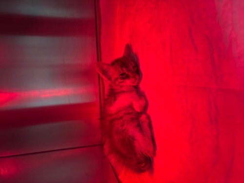 Bir süre önce sokakta, gözlerinde enfeksiyon ve halsizlikle mücadele eden bu minik yavruyu buldum. Çok zayıftı, üşüyordu ve kendi başına hayatta kalması neredeyse imkânsızdı. Onu veterinere götürdüm, tedavisine başlandı. Şu an ishal tedavisi oluyor, gözleri için damla kullanılıyor ve düzenli olarak besleniyor.