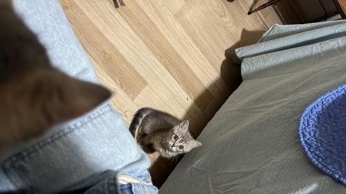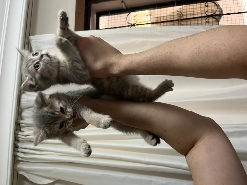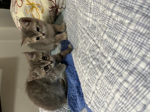 Biri erkek biri dişi kardeşler. Daha düz gri olan erkek biraz çizgileri olan (özellikleri kuyruğunda ) ve çok şaşkın bakan dişi. İkisi de çok tatlı çok akıllı tuvalet eğitimleri bile var. Bakamayağını söyleyen birileri tarafından bize verildiler sahiplendirmemiz için ama bizde de dört büyük tekir kedi var. Bizim evde çok sıkıntı çekeceklerini bilmesem inanın kendim bakarım o kadar tatlılar ki hem güzel rahat bir yuvalarını olsun istiyorum hem de üzülüyorum. Mecbur kalmadığım sürece ayrı sahiplendirmeyi düşünmüyorum. İkisini de aynı aileye vermek istiyorum çok seviyorlar birbirlerini birlikte uyuyorlar mama kaplarının başına birlikte gidiyolar tuvalete bile birlikte gidiyorlar. Bir yandan daha önce kedi bakmış bir yuvata vermek istiyorum bir yandan da yavru oldukları için büyük kediler tarafından hırpalanır diye düşünüyorum şuanki geçici yuvasında da diğer kedilerden ayrı duruyorlar. Diğer kedilere karşı biraz çekingenler ama insanlara hemen ısınıyorlar bir iki günden sonra tamamen sizin bebekleriniz olurlar. Çok büyük sorumluluk lütfen bi hevesle ve birilerine hediye etmeye çalışacak kişiler yazmasın ömürlük yuva arıyoruz.