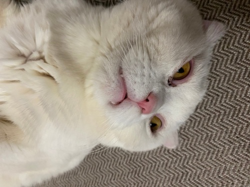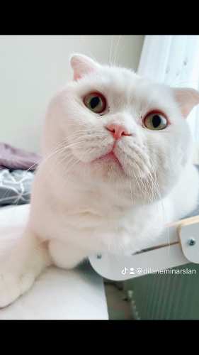 Şu an Ankara’da aile evinde yaşıyor. Turuncu gözlü beyaz tüylü pofidik, sakin, kendini sevdiren bir kedidir. Ondan sevgisini eksik etmeyecek yeni ailesini arıyoruz. Kısırlaştırma ve takip şartıyla sahiplendirilecektir.