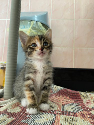3 aylık dişi yavru kediye kalıcı yuva arıyoruz. Kuru mama yiyor ve kum eğitimi var. 1 aylıkken annesine araba çarptı ve kardeşleriyle birlikte bulundu. Geçici yuvada süt ile beslendi. Şimdi bahçede kardeşleriyle kalıyor. Cezve oyuncudur, kardeşleriyle oynamayı çok sever. Uyumlu ve uysaldır. Takip şartı ile sahiplendirilecektir.