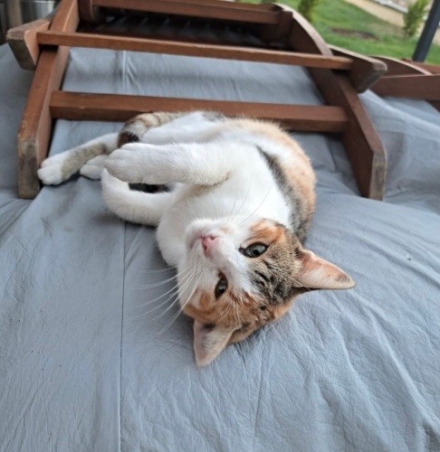 Şirine daha ufakken annesiyle beraber evimizin önüne geldi 1 aydır besliyoruz nerede kaldığını bilmiyoruz. zaman zaman sokak kedilerinin saldırısına uğruyor ne kadar korumaya çalışsak da. aşırı sevecen evimize girmeye çalışıyor ev kedisi olmak için doğmuş fakat evimizde saldırgan bi kedim olduğu için onu ben sahiplenemiyorum. daha birkaç aylık tuvalet eğitimi verilebilir, aşıları da yapılmalı. kalıcı bir yuvaya gitmesini çok isterim. daha küçük olduğu için haliyle baya enerjik evinize güzel bir enerji getireceğine eminim soğuklar gelmeden sahiplendirilsin 😔🙏🏻
