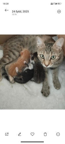 Anne kedimiz üç yavru doğurdu çok uysaldır yavrularla birlikte sahiplendireceğiz.