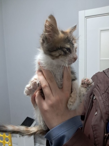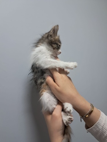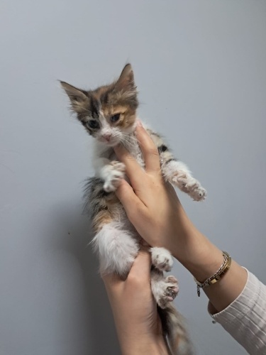 Henüz iki aylık bir bebek. Sokakta hasta bulundu. Şu anda veterinerde tedavi görüyor. Hızla iyileşiyor. Birkaç gün sonra klinikten ayrılacak. Dişi. Çok sevecen ve oyuncu bir bebek. Tam bir sevgi yumağı. Tedavisinden sonra tek gözünün engelli olma ihtimali mevcut fakat bu görmesine engel teşkil etmeyecektir. İyileştikten sonra sıcacık, ömürlük bir yuvası olsun istiyoruz. İlgilenenler iletişime geçebilir.