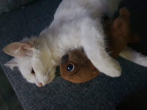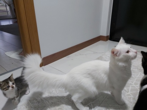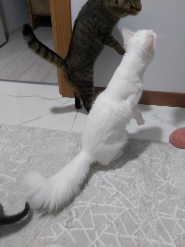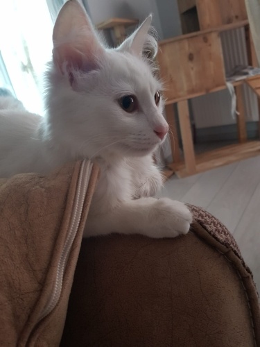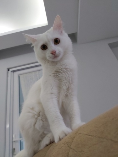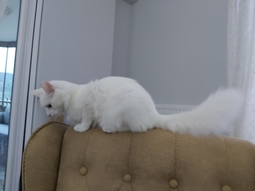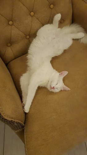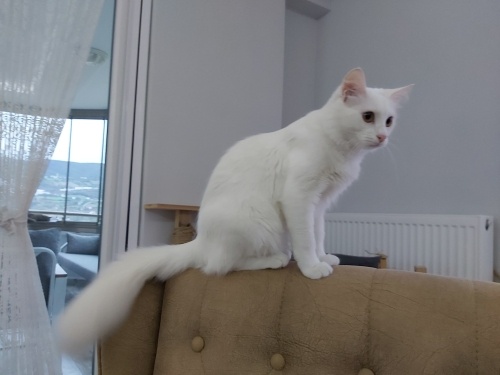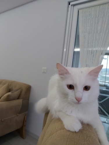 Daha önce satın alınıp sokağa bırakılan kar beyaz Ankara kedisine bir süredir bakıyoruz. Kalıcı yuva arıyoruz. İç dış parazit yapıldı. çipsiz. hareketli ve oyuncu. bilen bilir ipek gibi tüyleri var. evde çipli - kalıcı 3 kedimiz olduğu için bunu sahiplendireceğiz.